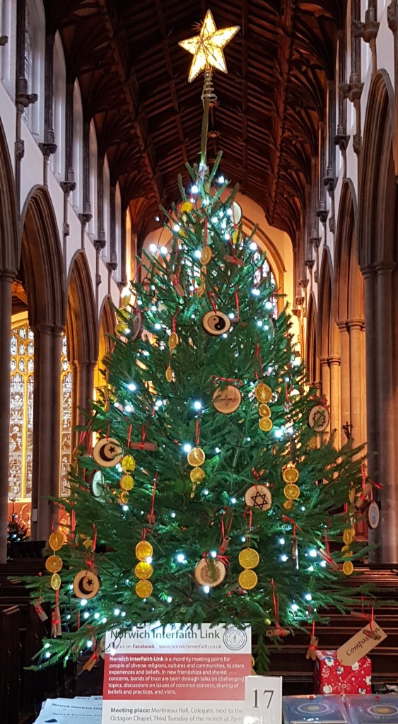 Norwich is a University city and people in Norfolk have global and national links through family, work, media and travel. All children and young people learn about world religions in their schools. There are Christian, Jewish, Muslim, Hindu, Buddhist, Spiritualist and Sikh places of worship in Norwich. There are Pagans, Humanists, Atheists and Agnostics. Families from different faiths and schools celebrate festivals and the City of Norwich remembers Holocaust Memorial Day, Remembrance Sunday, and the Forum building hosts the Peace Camp annually. The 2011 census classified Norwich as England’s most godless city, having the highest proportion of respondents reporting “no religion”, 42.5% compared with 25.1% for England and Wales as a whole. While there are many who do not affiliate with any of the main religions, Norwich Interfaith Link provides a forum for people from different groups, including humanists, agnostics and atheists, to share their questions, experiences and beliefs.