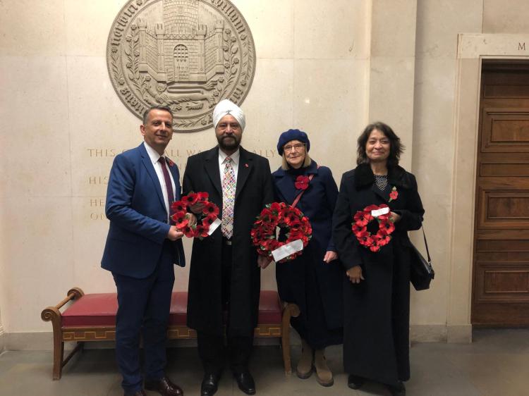 Bridget – Baháʼí; Gayatri – Hindu; Ujjal – Sikh and Nuno – Mormon, represented NIFL by laying wreaths at City Hall for allies from all over the world who gave their lives in wars.
