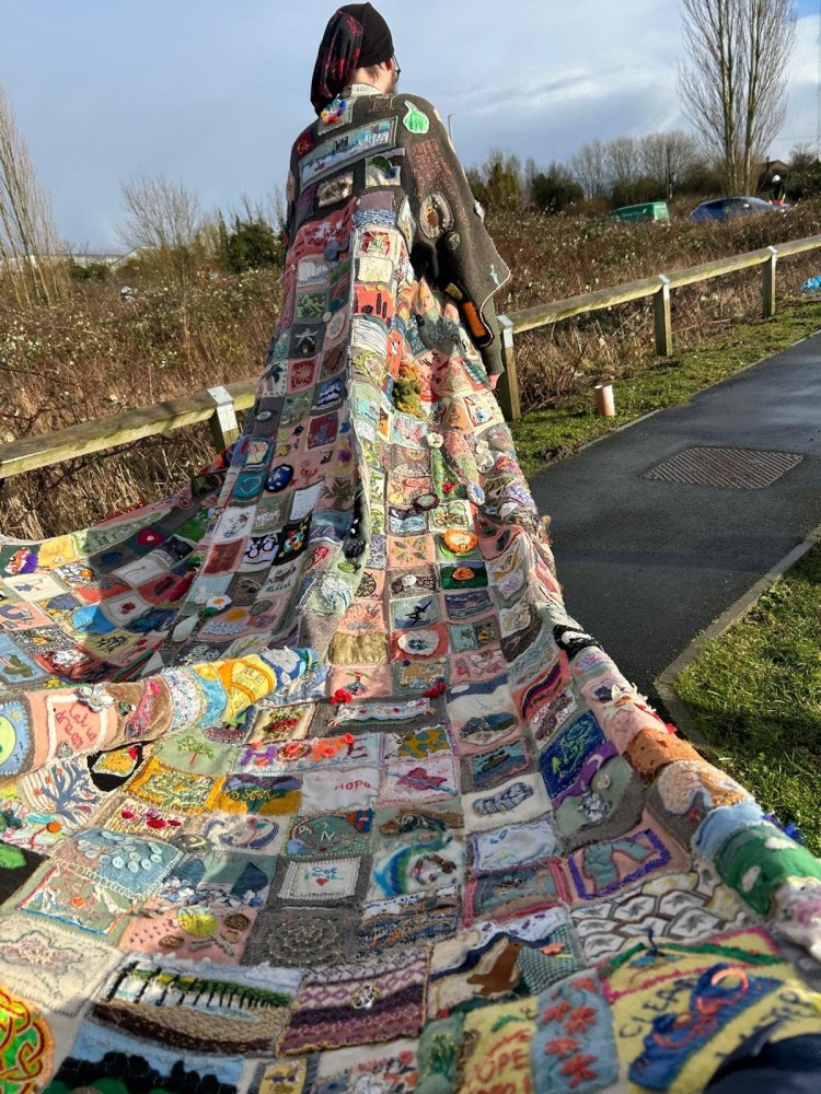 The Coat of Hopes is a patchwork pilgrim coat, on a walk through Britain.